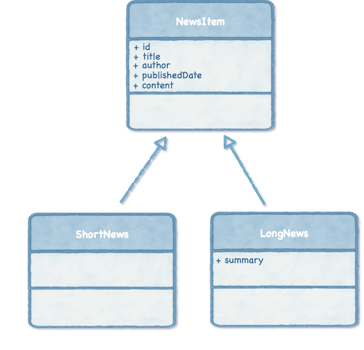 Here, ShortNews doesn’t introduce any new fields, but separating the types early still helped. It allowed Weaver to keep the model ready for future changes—different layouts, special flags, or unique business rules—without complicating the base class.